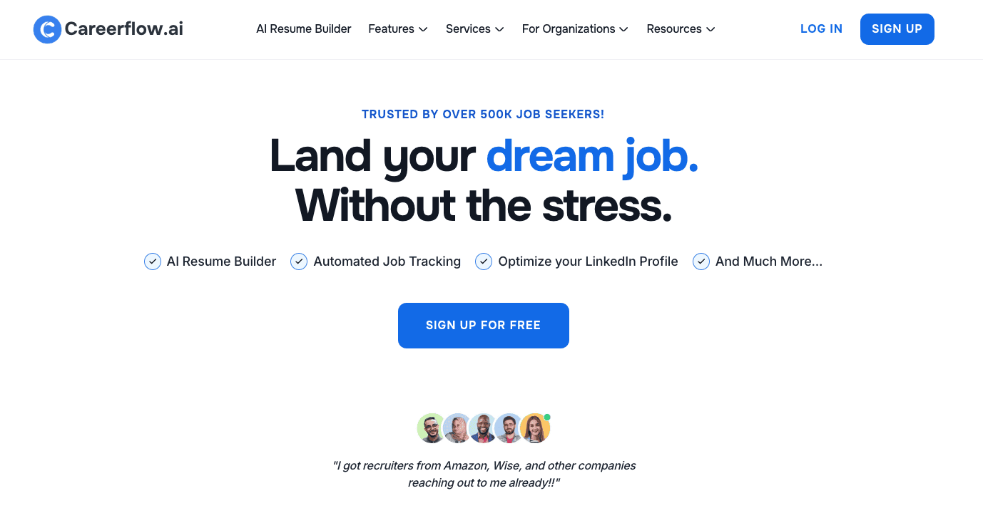 Careerflow positions itself as a complete solution that "allows you to save jobs, track application statuses, organize contacts, and send follow-ups, designed to simplify your job search." Their AI-powered features extend beyond simple tracking into application optimization.