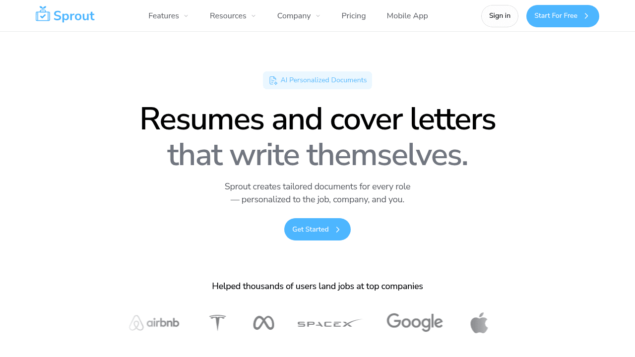 Sprout generates tailored, ATS‑friendly cover letters in seconds by mapping your resume to each job’s requirements.